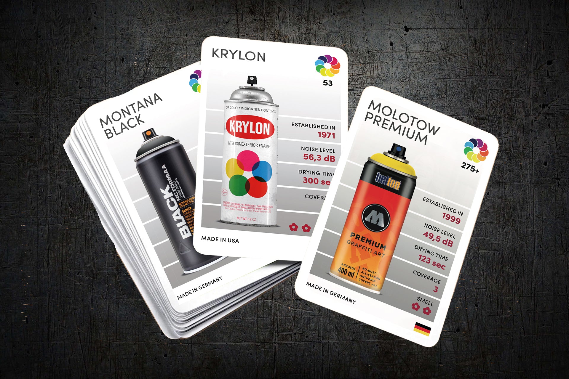 ✔ The TOPCANS Card Game is the creative adaptation of a traditional quartet in the world of graffiti spraypaints.